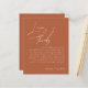 Place these cards at the table setting for each of your guests at your wedding reception. Cards features rustic terracotta calligraphy script Love + Thanks with special message.