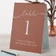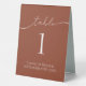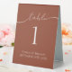 Rustic Terracotta Script Wedding Table Number Table Tent Sign to create a fun modern table setting for a classic wedding. Personalise it on the front and back.