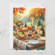 This Thanksgiving dinner invitation is designed to bring family and friends together for a festive holiday meal. The design incorporates a digital watercolor illustration, depicting an outdoor feast complete with a turkey and all the traditional trimmings. AI-generated artwork with design direction by Susang6.
