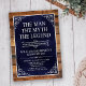 He IS The Man The Myth The LEGEND! His life has been an amazing adventure and it's time to celebrate his legacy and him. This rustic wood backed textured navy blue paper with white type and and white scrolled corners 85th Birthday invitation is perfect for inviting friends and family to join you in honouring and celebrating this incredible milestone birthday! To see your unique invitations click on "Personalise this Template" and type in your information. It's super easy!