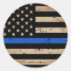 Rustic Thin Blue Line American Flag Police Classic Round Sticker