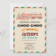I chose the larger postcard sized one, as the font would be large for older eyes, and customised it keeping the Rail Ticket theme on the front, with venue address/date/time of party, and on the back I added another steam train and various 80 speed limit/rail signages. The trick is not to overdo it or it looks too busy. I also added at one end of the front side, a word of thanks from the birthday boy.