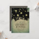 A rustic and vintage wedding invitation with glowing lights under a tree.