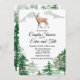 Rustic Tree Deer Couples Shower Engagement Party Watercolor Fir Pine Trees Invitation