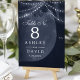 Illuminate your rustic wedding reception with these charming table numbers. The navy blue background features a beautifully illustrated tree adorned with twinkling string lights. Carved initials add a personalised touch, making each table number a unique keepsake for your special day. Perfect for outdoor or indoor celebrations, these table numbers create a warm and inviting atmosphere.