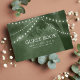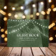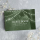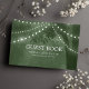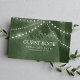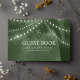 Capture cherished memories of your rustic wedding with this enchanting guest book. A majestic tree silhouette adorned with twinkling string lights against a lush green background sets the scene for your guests' heartfelt wishes. This guest book will become a treasured keepsake, reminding you of the love and joy shared on your special day.