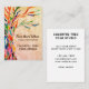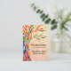 This decorative business card features a print of a rainbow coloured tree of life mosaic on a beige background.