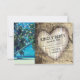 Exotic tropical wedding response cards featuring a summer beach setting, string twinkle lights, and a rustic palm tree with a carved heart featuring your rsvp details.