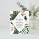 Invite family and friends to your event with this customisable christening invitation. It features watercolor illustrations of tropical leaves and plants with faux gold foil leaves and black brush watercolor accents. Perfect for summer and tropical events. Personalise this tropical christening invitation by adding your details.