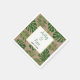 Tropical leaves green and gold wedding paper napkin. This outstanding design displays leaves of Split Leaf Philodendron (Monstera deliciosa) or Swiss Cheese Plant and palm leaves in green with gold outline on cardboard style kraft paper. A white frame with gold outline holds your text. Choose it for your tropical coastal beach or destination wedding.