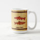 A digital rendering of four trout facing in opposite directions, with an antique rustic look, superimposed on an old paper background image. There are two places for you customise by adding your own text.