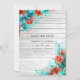 Rustic turquoise - teal and coral watercolor roses and tropical foliage wedding save the date with trendy calligraphy designed to be quickly and easily customised.