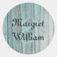 Country chic wedding envelope seal, with graphics of a turquoise painted weathered wood look background. Personalise with the bride and groom's names. Matching products available.