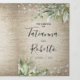 Budget tuscan fairytale wedding trifold invitation featuring a rustic chateau stone background, and elegant watercolor green foliage with accents of faux gold foil. You are able to add a personalised photo of you and your partner, the wedding details such as accomodation information, gift requests, the invitation, and an rsvp postcard for your guests to cut off and send back.