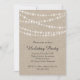 Festive twinkle lights decorate this Holiday Invitation on an illustrated burlap background. If additional coordinating items are needed, just contact us at prettyfancyinvites@gmail.com with your request.