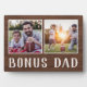 Charming wood sign for Father's Day, birthdays, or new stepdads features two photos side by side on a rustic background with "Bonus Dad" beneath.