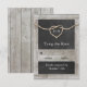 A rustic rope tied in a heart decorates this wedding RSVP on a chalkboard & barn board background, making it perfect for the rustic, country, barn or western themed wedding. It is shown on the matte paper; however, I recommend the linen or white felt paper for a textured feel. Scroll down to see the rest of the wedding collection, and if additional items are needed, just contact us at prettyfancyinvites@gmail.com with your request