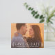 This pretty vintage-style 1-photo save the date features a rustic typography design that includes a calligraphy script and laurel illustrations. The typography overlays a full-bleed photo. Customise with your wedding details and favourite photo.