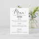 Rustic typography wedding menu card with hand drawn script and decorative accents.