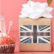 Vintage style design UK United Kingdom flag in red and blue faux sparkles glitters. We use photo of sparkles glitters.