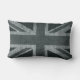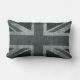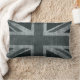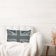 Rustic Union Jack British and United Kingdom flag in shades of grey on a cool burlap texture look background. The pillow is actually a nice cotton and not itchy burlap.