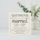 Eat, Drink, and be Married -- Vintage style rustic country wedding invitations -- Swirly, curly scrolls and old-fashion typography on antique ivory cream white parchment background. Add your names and wedding info in this easy to use template. Elegant but fun and whimsical, chalkboard style script calligraphy can be modified for your formal or semi-formal retro wedding theme. Casual modern style is perfect for trendy contemporary weddings with a fun touch of sophisticated charm for the traditional bride and groom. Please contact us for help with customisation if you need additional room for your wedding details. Other sizes and chalkboard styles available along with coordinating styles for engagement party and couples shower. NOTE: This product design is set-up for square cards only -- requires extra postage.