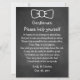 Rustic look wedding favour basket sign, with an vintage chalkboard look and graphics of a white bow tie outline, at the top. Personalise the white text to read what ever you want to use the sign for. Great for anytime of the year.
