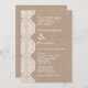 This elegant invitation is ideal for a stylish wedding with a vintage flair. It features a column of doilies on the left edge with a ribbon on top and a soft burlap texture on the background. Chic and delicate design great to celebrate a memorable event.