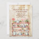 Charming 75th birthday party invitation with rustic, vintage country farmhouse kitchen shelves covered with plants and old metal teapots. Contact me for assistance with customisation or to request matching or coordinating Zazzle products