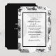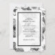 This design features rustic black and white vintage flowers. The black and white floral design combines vintage flowers together with an opaque white layer, a black border and simple text to create a sophisticated classy look. The elegant arranged layout on one side and the black opposing side displaying the bride's and groom's names combine to bring together a truly unique design. The use of classy typography for the wording text compliments the design. This design is ideal for any wedding theme. The perfect design for all seasons. Matching wedding stationery items and other wedding invite formats are also available.