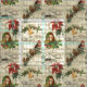 Rustic Vintage Gold Floral Christmas Ephemera Fabric