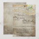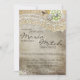 Rustic Vintage Lace Distressed Wedding Invitation. A very classy and rustic shabby chic wedding invitation featuring different green and cream flowers with metal embellishments in them and around them, pearl like elements grace the top and bottom and fancy Victorian lace and a bird on a branch adorns this invitation on top a rustic brown background. A great Rustic Vintage Lace Distressed Wedding Invitation for that rustic or vintage wedding and these invites are budget friendly but look awesome!