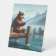 Rustic, vintage outdoorsman bear mountain pedestal sign