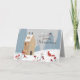 Vintage style, rustic holiday card with antique home in a snow covered meadow. A curious fox has come out to investigate the newly fallen snow and there are birds eating the last of the red berries on the bushes. Inside a proud buck stands with his doe near a tree. Personalise with a different message if you wish and include your names and the year. A red fox is on the top looking around to the back of the card, where you'll see two sweet birds who've finished off the berries!