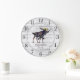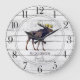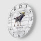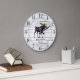 Rustic white washed barn wood walking moose family name large clock for your cabin, lake house, tiny house or any rustic woodlands, wilderness, or country setting. The stylish script and serif typeface contrasts gives this design a contemporary rustic vibe.