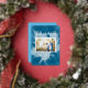 Rustic Watercolor Blue Fall Photo Thanksgiving Foil Holiday Card
