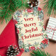 Rustic modern nonphoto winter botanical Very Merry Joyful Christmas trendy bold typography script holiday card with red burgundy and sage green borders of pine cones, berries, boughs, and foliage on a pale yellow cream background. +++++++++++ Easy to personalise with your text and signature! +++++++++++ You can use the reverse side to add a few handwritten personal lines.