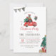 Rustic Watercolor Car Christmas Tree Holiday Party Invitation