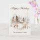 Rustic Watercolor Deer Winter Forest Christmas Card