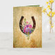 A colorful spray of watercolor flowers add a touch of rustic beauty to this lucky horseshoe. Inside the card and on the back is a coordinating mossy green with more watercolor flowers. The colors in the bouquets include pink, lavender, purple, orange and green. You can Customize this and add text for any occasion or leave it blank to handwrite your sentiments.