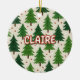 Rustic Watercolor Holiday Red Green Pinetrees Ceramic Ornament