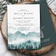 Elegant and rustic wedding invitation features watercolor mountain with trees with classic typography. On the back is QR code to RSVP and more details about your wedding.
