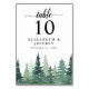 Rustic Watercolor Pine Forest Winter Wedding Table Number