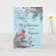 Merry Christmas for stepmom card with winter watercolor foliage, cardinal and thoughtful verse.