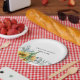 Rustic and elegant watercolor sunflower and eucalyptus on white paper plates.