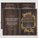 Rustic, Romantic card design featuring watercolour sunflowers bouquets, a modern shape with semitransparent frame for text, arrows with hearts and sunflowers as divider, all on an old barn background. Use Customise tool to add your info. Matching items can be found in my Rustic Sunflowers Old Barn Collection.