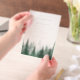 Easily personalise your wedding invitations with this editable template. Features minimal elegant typography design with watercolor forest trees background.