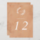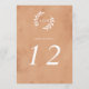 This stylish 5x7 table number card features a peach and clay watercolor background with white text. It has the couple's initials inside of two hand drawn branches. The design repeats on the back.