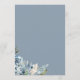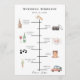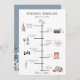 Rustic colourful watercolor wedding day elements, timeline program. Card features church, camera, bottle with glass, plate setting, music notes, cake, bouquet, and retro car. Back of card features watercolor flowers in shades of dusty blue with matching background colour . Text font style and colour can be customised.