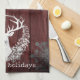 Add cosy seasonal charm to your kitchen with this Red Rustic Watercolor White Reindeer Christmas towel. Featuring a graceful white reindeer framed by a filigree wreath, the design rests on a weathered wood background accented with soft grey snowflakes. A cheerful “Happiest Holidays” greeting in modern typography pairs perfectly with the country rustic design, making it a stylish yet practical piece for the season. Ideal as a cheerful holiday kitchen accent or a thoughtful Christmas kitchen gift, this towel brings both function and farmhouse-inspired beauty to your holiday home.